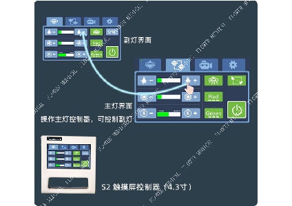 为满足不同的手术需求,该品牌手术灯创新搭载灯头主从互控功能——通过单一控制器即可跨灯头对另一灯头进行集中调控,实现双灯照明参数(亮度、色温、光斑)的瞬时同步与统一。